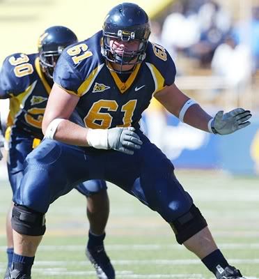 The Bills need help on the offensive line. Having not been given the chance to grab D'Brickashaw Ferguson at #8 or Marcus McNeil at #42, grabbing a right tackle in the third round will be a priority. O'Callaghan, at 6'7"/344, has ideal size. He is very strong, dominating at the point of attack. He is simply an outstanding run blocker, making him draw the modifier "prototypical" often. He is a hard worker with top intangibles. Given his size, strength, and ability to grade a road for the running game, O'Callaghan is NFL-ready, capable of playing either right tackle or right guard (should he struggle with quicker defensive ends). Regardless, this is a dynamite value pickup for the Bills.