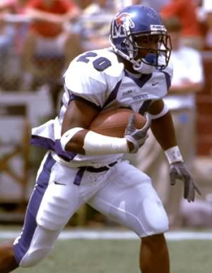 It is no coincidence that Logan Mankins was chosen from the oodles of players with mid-round grades as the Patriots' first pick last year. Logan Mankins played at Fresno State under Pat Hill, Bill Belichick's old coaching buddy. Given a favorable report from Hill, Belichick would draft virtually anyone in the first round. Richard Marshall is that guy this year. Marshall holds an early second round grade; he will surely be gone by pick #52. He is leaving school one year early, but is still scheduled to graduate this spring. He has an average NFL frame at 5'11"/189 and has above average NFL speed at 4.40. Marshall is aggressive against the run and makes plays all over the field. He is a Patriot guy through and through. Nevertheless, Deangelo Williams will be a tough guy to pass up for Richard Marshall on draft day.