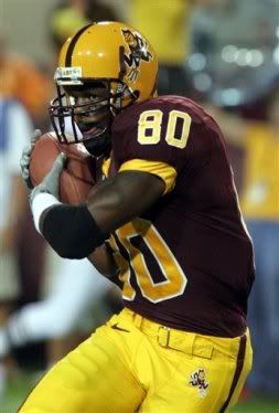Perhaps the most primary need area for the Patriots lies at receiver. At pick #21, the team has virtually no chance of landing either Santonio Holmes or Chad Jackson - whom they love. Derek Hagan may weel be the next best thing. His 6'2"/208 size is an excellent compliment to his 4.42 speed. He is an excellent route runner tha can make plays after the catch. One of the most productive receivers in Arizona State University history, Hagan would present the Patriots with the NFL-ready receiver that is needed this year. Hagan's polished game plays perfectly into the Patriots hand. To boot, Hagan has the week-by-week mentality that the Patriots love.