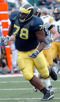 Gabe Watson is a run-stuffing defensive tackle. At 6'3"/339, he has NFL-ready size from day one. He has a questionable motor. On one play, he will look like a 7th round pick. On the next, he will look like a top five pick. During the Senior Bowl practices, he was on his game the entire week. He had to be taken out of certain inside running drills to allow the team to practice. With him on the field, the team could simply not move the ball up the middle. This type of ability and talent is just what the Gaints are looking for. Being a lazy underachiever, Watson's stock is very volatile. He could land anywhere between 20 and 40. However, if anyone has faith in character formation, it is the perfectionist and disciplinarian, Tom Coughlin.
