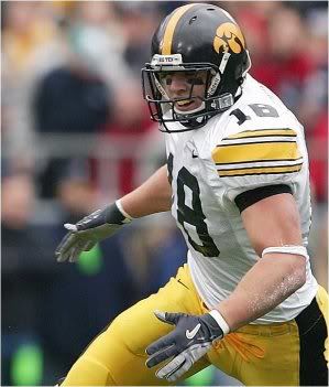 Shawn Barber just is not cutting it on the weak side for the Eagles. Chad Greenway is a prototypical WILL linebacker who would fit perfect alongside Jeremiah Trotter and Dhani Jones. Greenway is ideally sized at 6'3"/242 and has impressive strength. His 4.75 speed is sketchy, but he appears to fly all over the field on film, making Greenway an anomaly. Most of all, Greenway is superb in coverage. Having recevied his first 11-on-11 football action at Iowa, Greenway is still developing as a player. Considering he was considered on-par with AJ Hawk at the beginning of this football season, it is easy to see why teams can look right past the 4.75 speed figure.