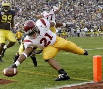 LenDale White may be fat and out of shape. At the moment, his hamstring may barely be attached at the hip. Regardless, the Steelers will find it impossible to let LenDale White slip past them on draft day. Having just lost Jerome Bettis, and having had a power option out of the backfield for seemingly ever, White would keep the tradition going. At 6'0"/238, LenDale has impressive size. Different from most big backs, White has amazing footwork a la Jerome Bettis. He is a north/south runner with good vision and excellent power. During his entire USC career, he was in the shadow of Reggie Bush, amassing 17 TDs and 1000 yards per season on average nonetheless. If he makes it to #32, the Steelers would hit a home run.