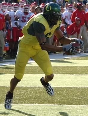 Charger fans should be worried about the future of their wide receivers. Keenan McCardell can only hold down the fort for so long. At 6'2"/197, Demetrius Williams plays faster than his 4.47 timed speed on the field. He is a tremendous leaper that adjusts well to the ball downfield. He is simply an incredible deep threat that is uncoverable in one-on-one situations. In the open field, he can make the most of the space that he is given, making him a weapon in the intermediate passing game as well. While Williams has to gain weight to be a 40-play NFL receiver, he would immediately give the Chargers a slot receiver that offers the offense another dynamic option in the passing game.